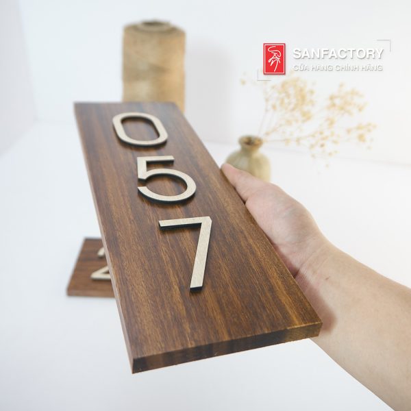 Bảng gỗ số phòng được gia công nề gỗ tự nhiên, nội dung cắt laser từ gỗ MDF cao cấp chống ẩm mốc. Bảng số phòng SAN-TV08 có dán sẵn lớp keo 3M 2 mặt siêu dính giúp bạn tiện lợi hơn trong việc lắp dán bảng trên cửa, tường phòng cách linh động.